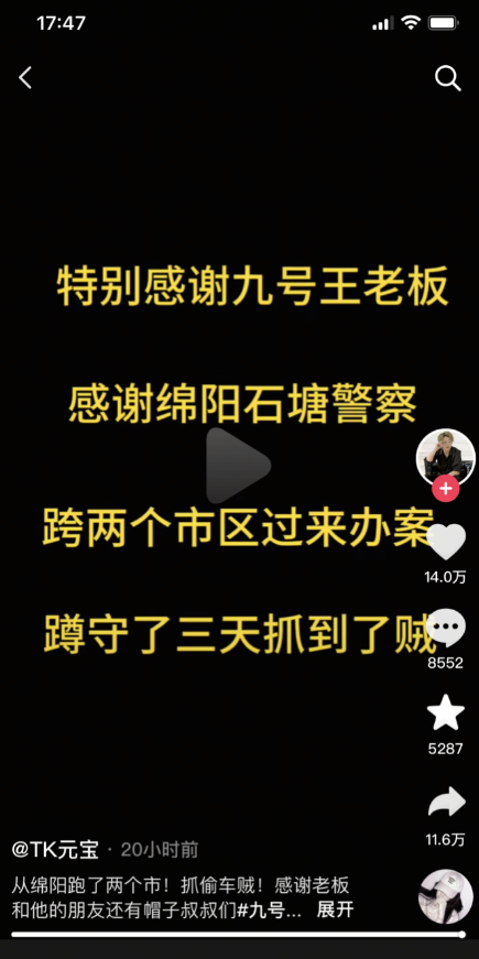 据抖音用户“TK元宝”发布的现场视频显示,凌晨5点左右,她的九号电动摩托车被盗。早上8点左右,用户起床后看到了手机里九号于凌晨5点左右发送的短信提醒,发现电动摩托车失窃。随后,她立即联系了自己当时购车的江油九号电动车门店,在门店老板协助下,通过九号电动APP启动车辆定位功能,实时追踪到被盗车辆正向四川南充市方向移动。